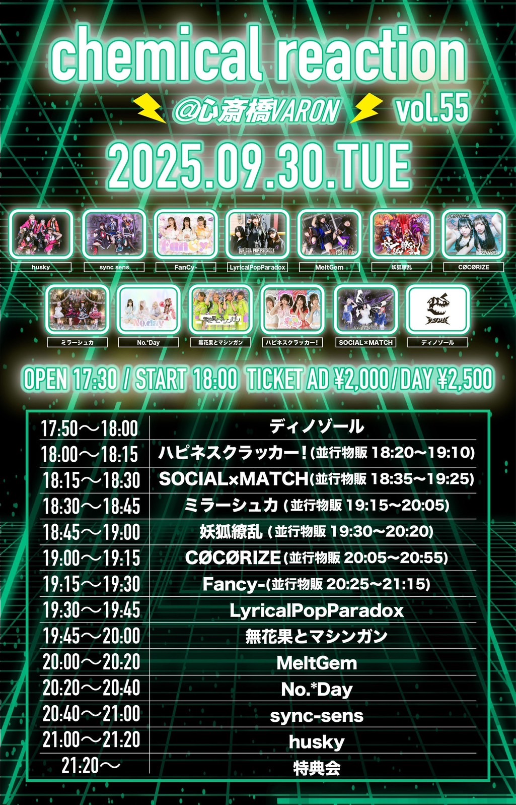 - husky / sync sens / FanCy- / LyricalPopParadox / MeltGem / 妖狐繚乱 / CØCØRIZE / ミラーシュカ / No.*Day / 無花果とマシンガン / ハピネスクラッカー! / SOCIAL×MATCH / ディノゾール
