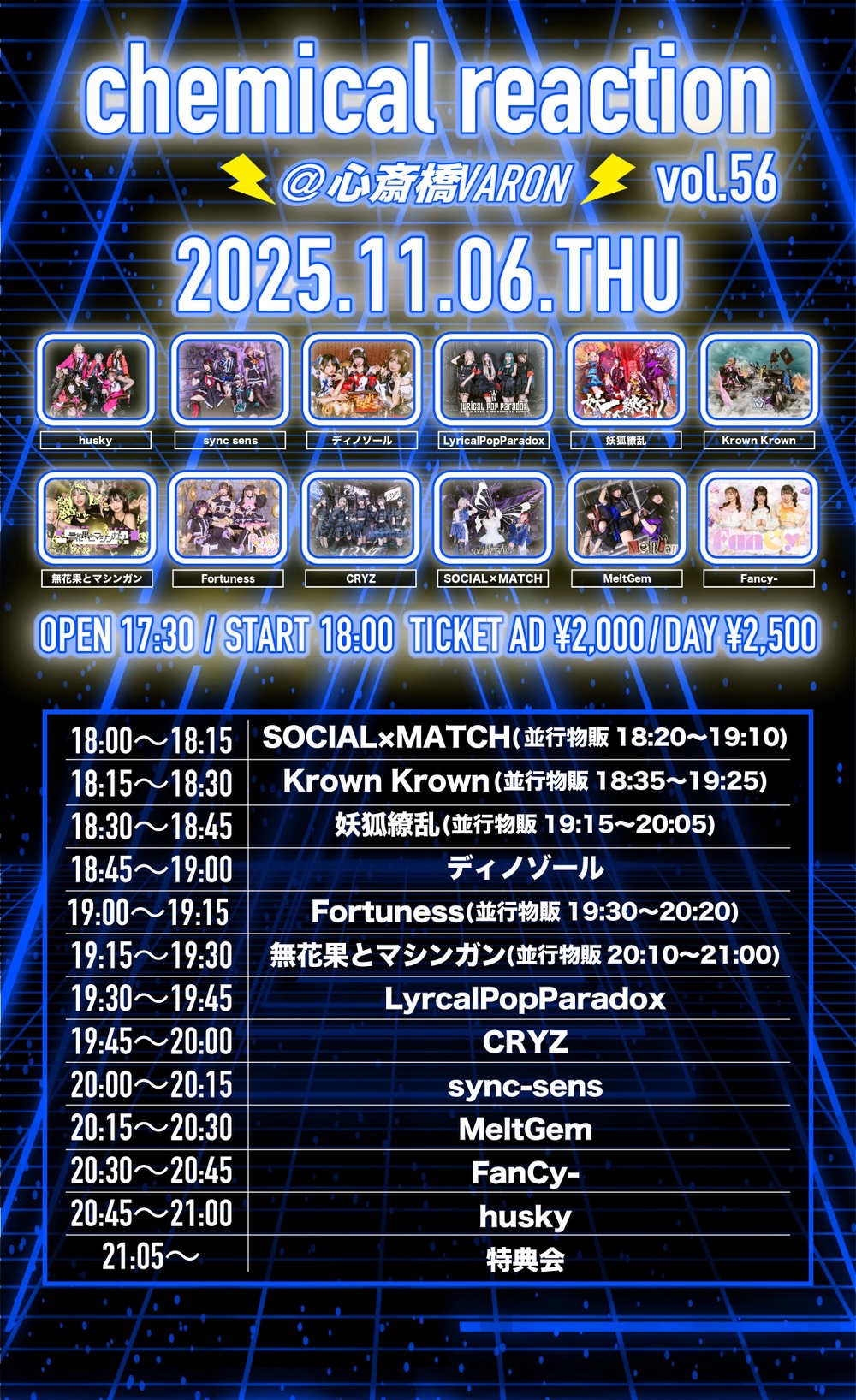 - husky / sync sens / ディノゾール / LyricalPopParadox / 妖狐繚乱 / Krown Krown / MeltGem / 無花果とマシンガン / Fortuness / CRYZ / SOCIAL×MATCH / FanCy-