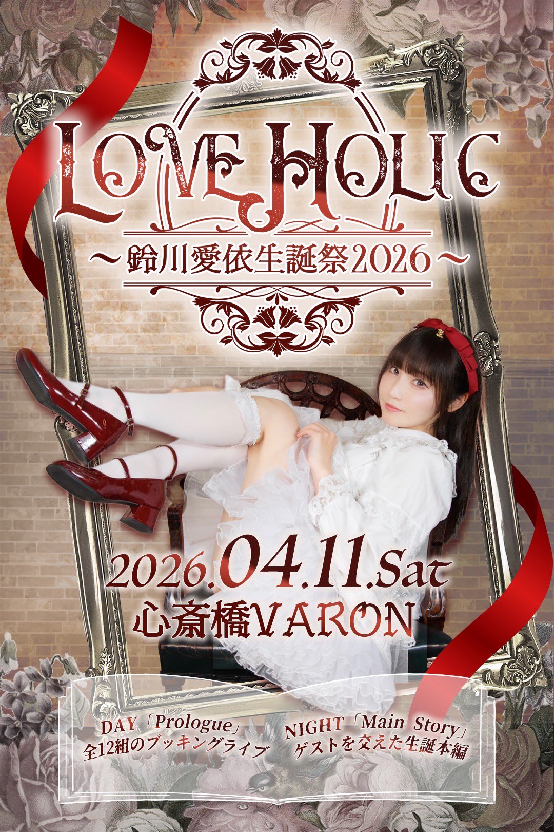 心斎橋 VARON(ヴァロン) スケジュール 2026.4.11(Sat) 『LOVE HOLIC〜鈴川愛依生誕祭2026〜』 [ACT] 鈴川愛依 / 他 [OPEN/START] TBA [料金] TBA (問)心斎橋VARON 06-6243-1400 / info@osaka-varon.jp