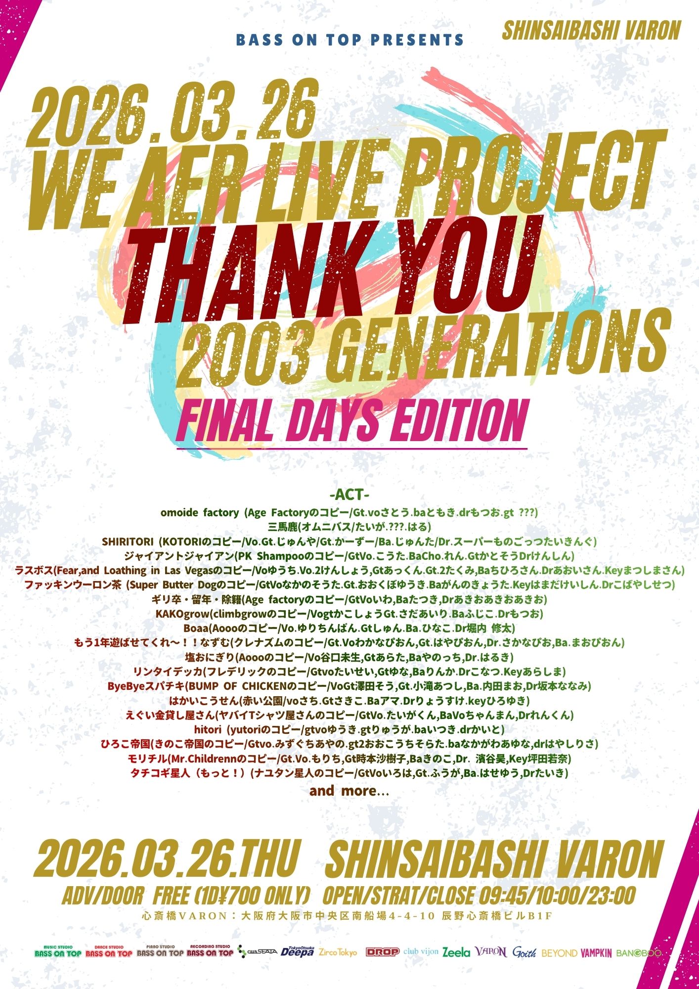 BASSONTOP pre. We are Live project THANKYOU2003 GENERATION FINAL Edition
