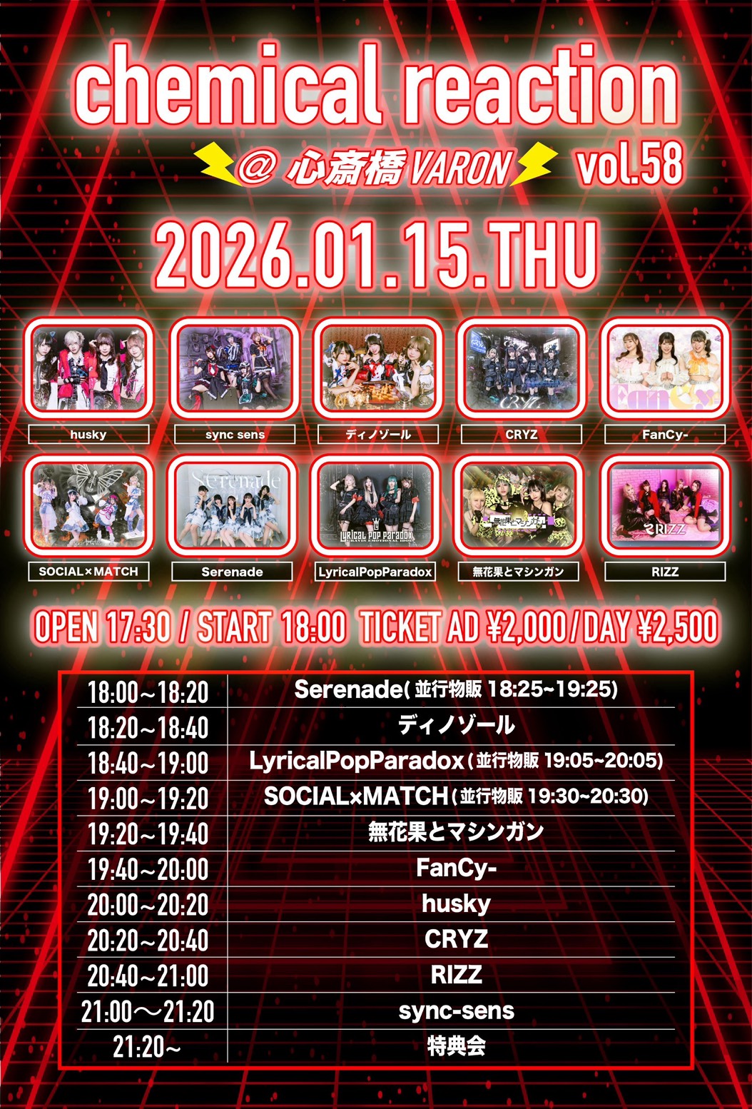 - husky / sync sens / ディノゾール / CRYZ / FanCy- / SOCIAL×MATCH / Serenade / 無花果とマシンガン / LyricalPopParadox / RIZZ