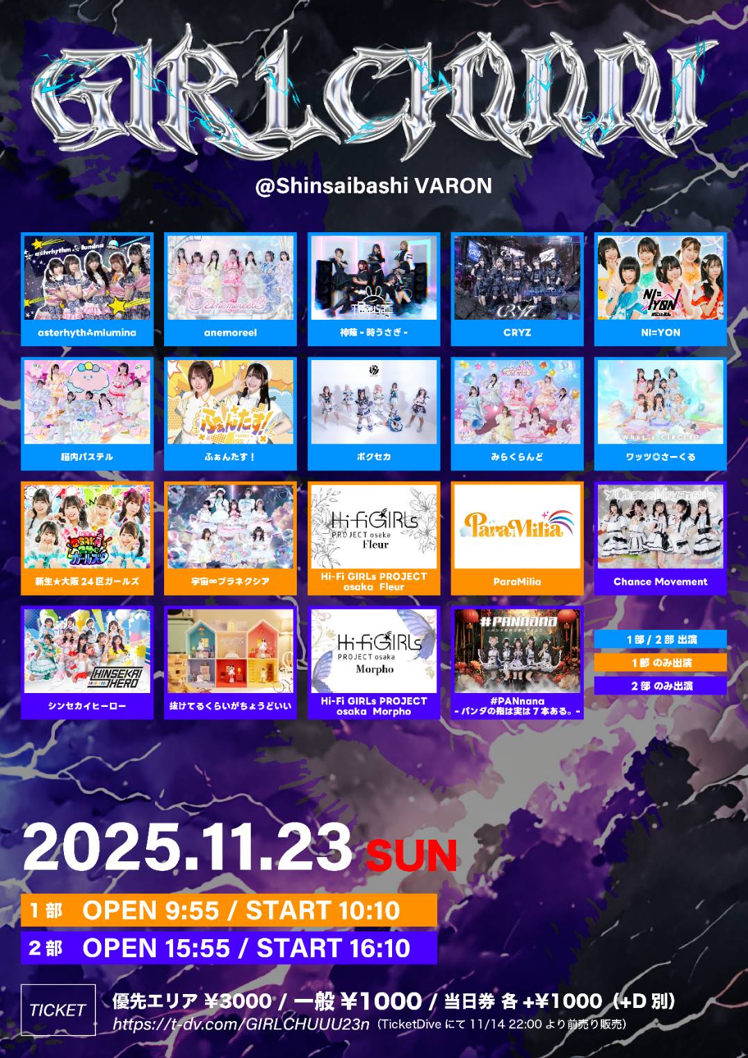 - ボクセカ / CRYZ / ワッツ◎さーくる / #PANnana / みらくらんど / Hi-Fi GIRLs PROJECT osaka Fleur / Hi-Fi GIRLs PROJECT osaka Morpho / NI=YON / 抜けてるくらいがちょうどいい / anemoreel / ふぁんたす! / asterhythm⁂lumina / 脳内パステル / シンセカイヒーロー / Chance Movement / ParaMilia / 新生★大阪24区ガールズ / 神薙-時うさぎ- / 宇宙∞プラネクシア
