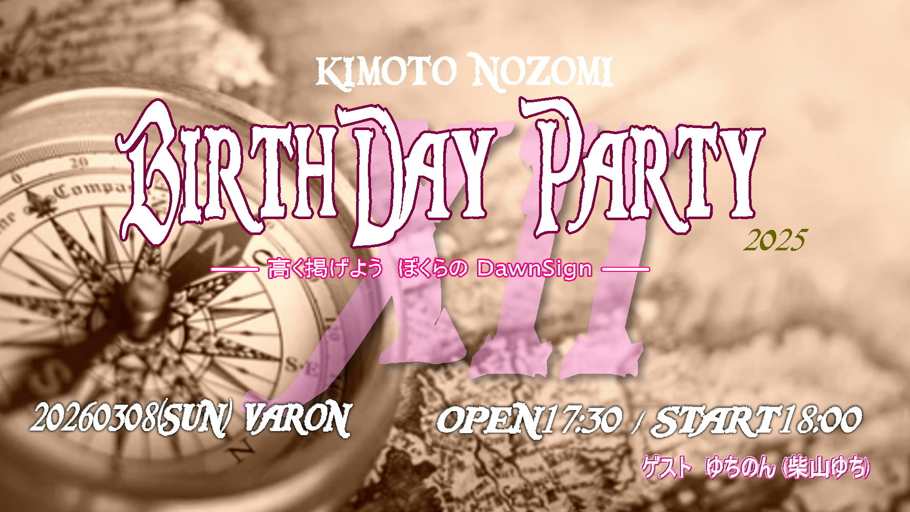 心斎橋 VARON(ヴァロン) スケジュール 2026.3.08(Sun) 木元のぞみ生誕12th ONE MAN LIVE [ACT] 木元のぞみ // ゲスト ゆちのん (柴山ゆち) [OPEN/START] 17:30/18:00 [料金] 前売り3000円+D / 当日3500円+D チケット ↓ TIGET https://tiget.net/events/471960 (問)心斎橋VARON 06-6243-1400 / info@osaka-varon.jp