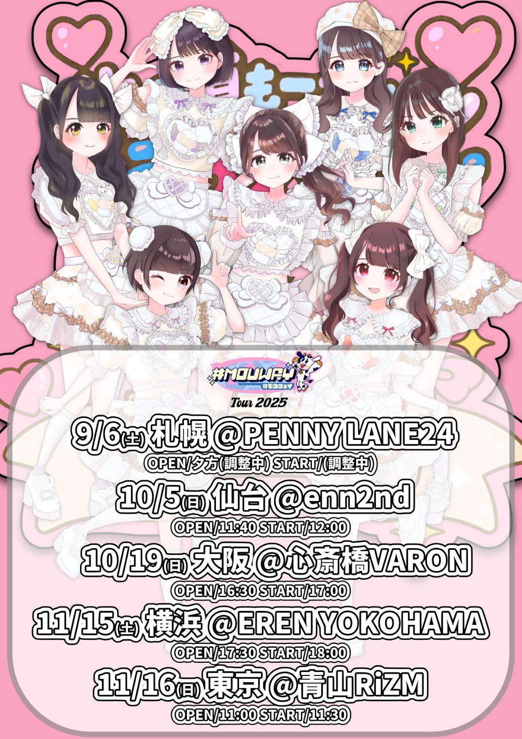 心斎橋 VARON(ヴァロン) スケジュール 2025.10.19(Sun) #MOUWAY5都市ツアー [ACT] #MOUWAY [OPEN/START] 16:30/16:50 [料金] 前方エリア4000円/一般1000円/(別途1ドリンク) (問)心斎橋VARON 06-6243-1400 / info@osaka-varon.jp チケット →https://ticketdive.com/event/MOUWAY_S3osaka