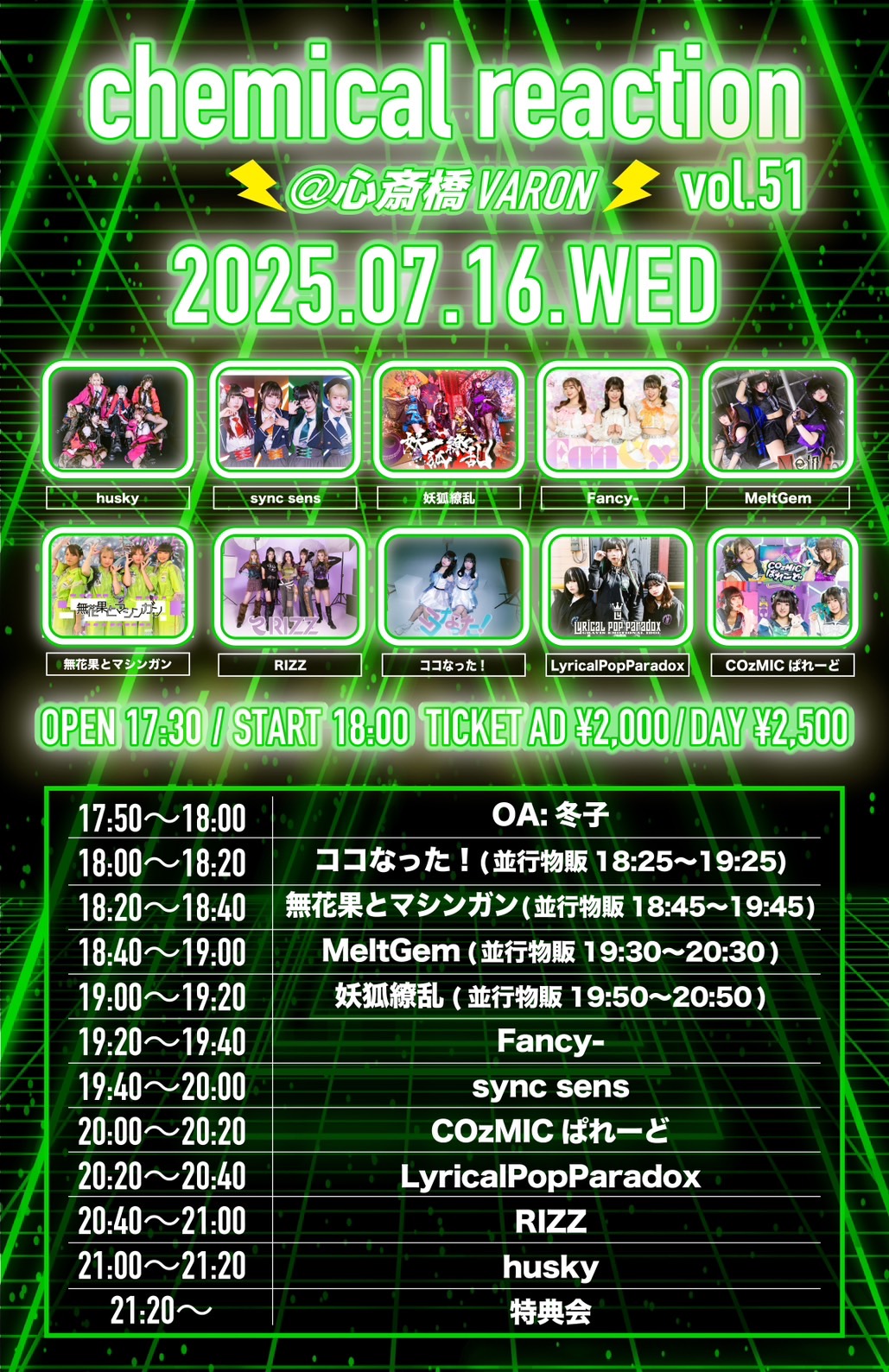 - husky / sync sens / 妖狐繚乱 / Fancy- / MeltGem / 無花果とマシンガン / RIZZ / ココなった! / LyricalPopParadox / COzMICぱれーど
