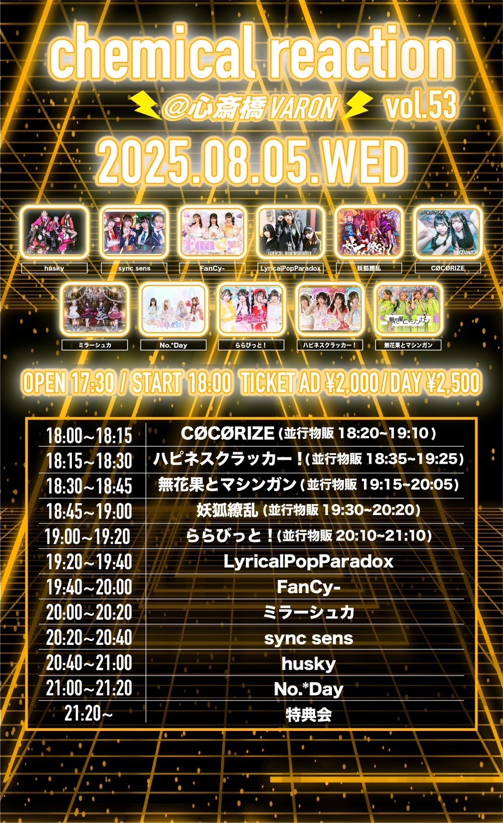 - 前売:¥2000 当日:¥2500 (1D別)