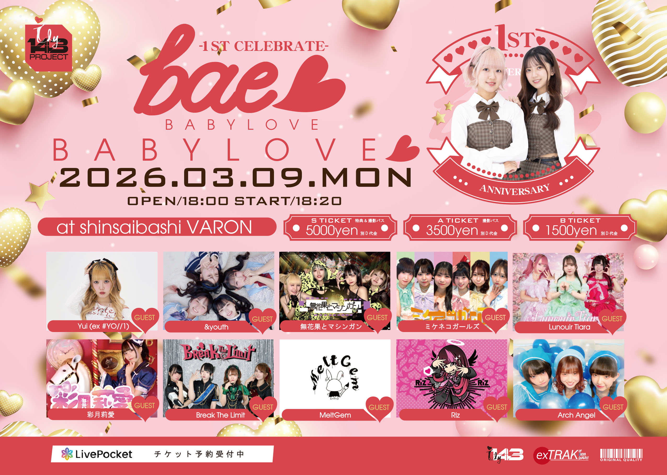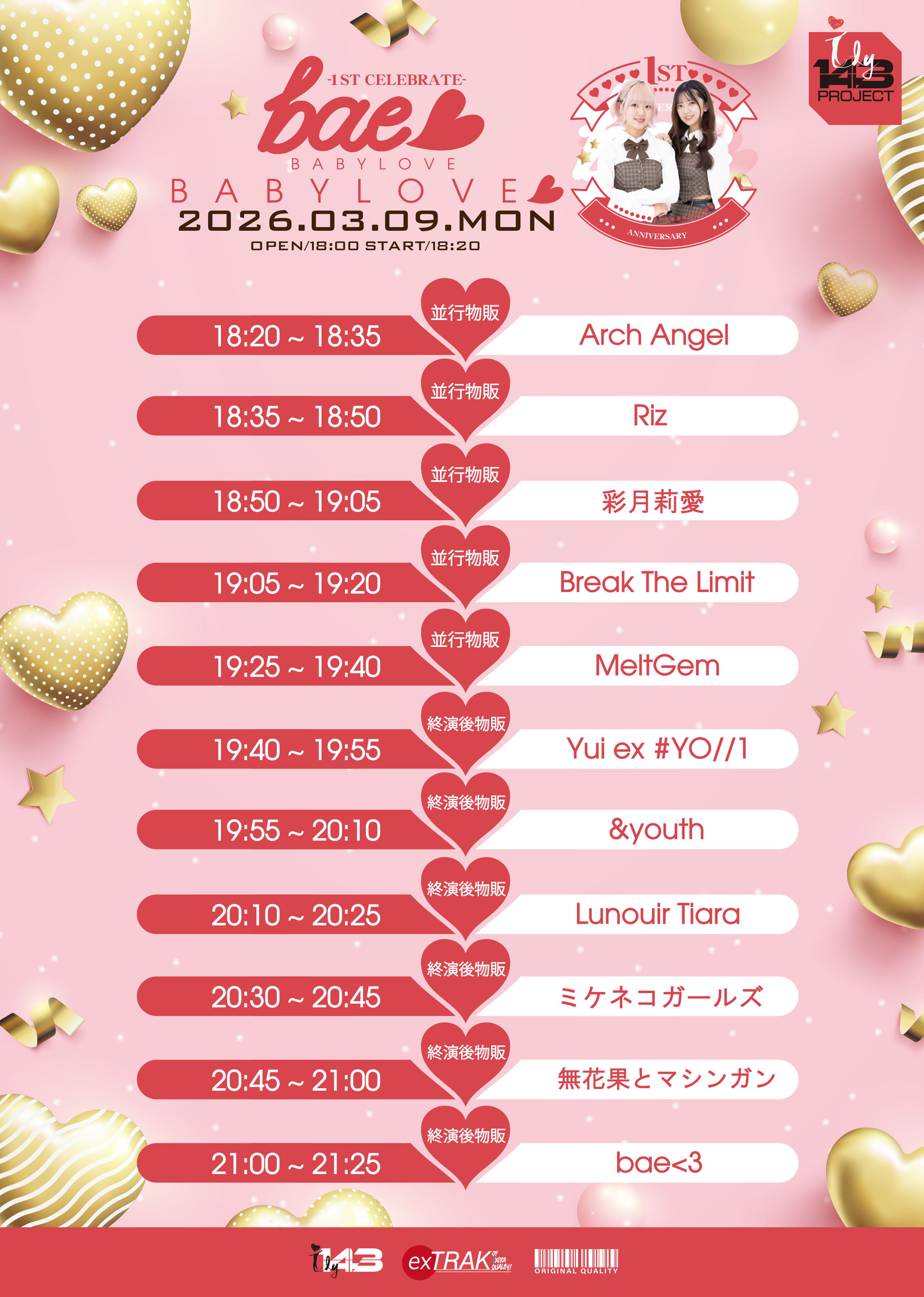 - [出演] bae<3 / [GUEST] ミケネコガールズ / 無花果とマシンガン / &youth / MeltGem / Break the Limit / Lunouir Tiara / Yui from ex # YO//1
