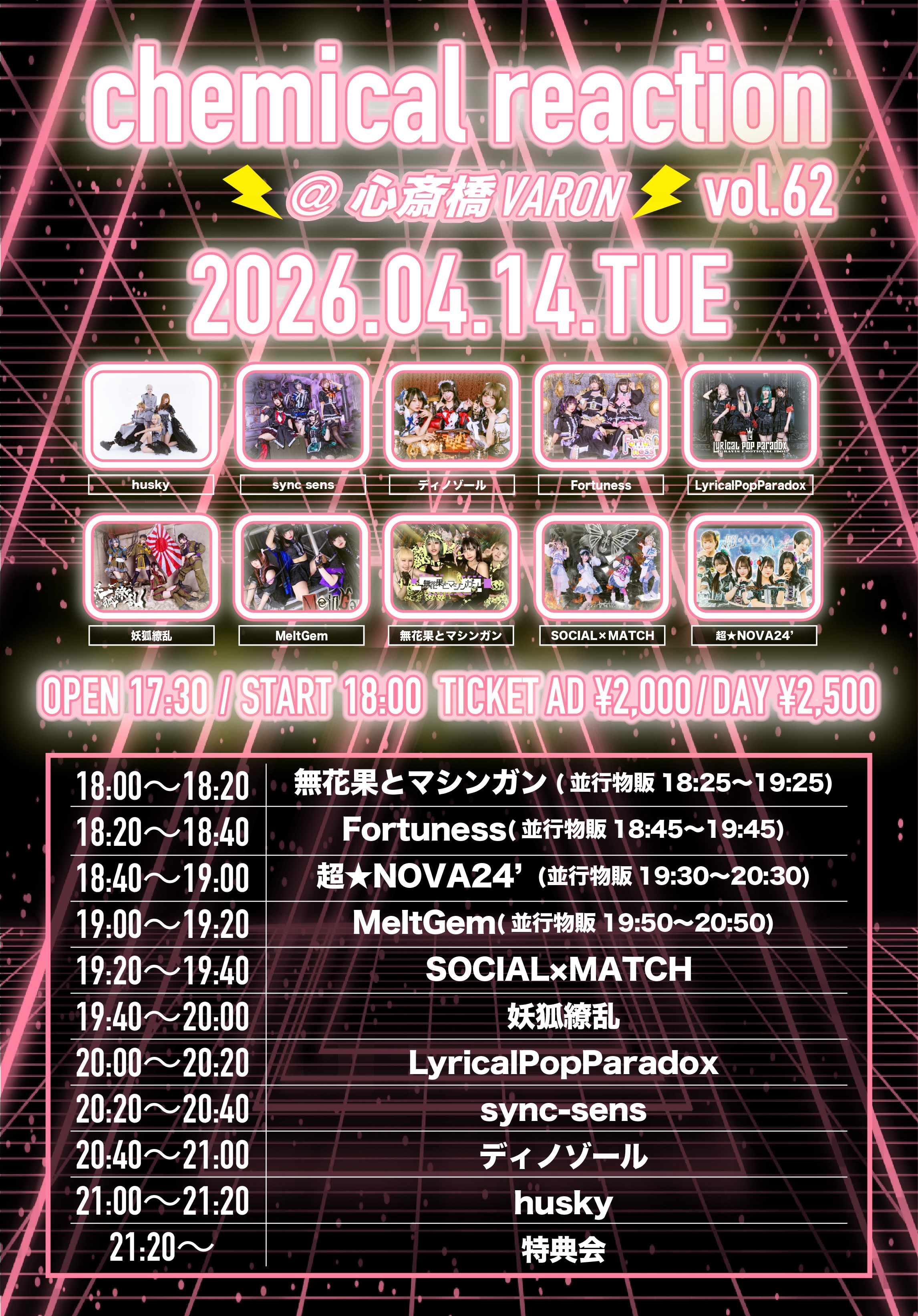 - husky / sync sens / ディノゾール / Fortuness / LyricalPopParadox / 妖狐繚乱 / MeltGem / 無花果とマシンガン / SOCIAL×MATCH / 超★NOVA24’