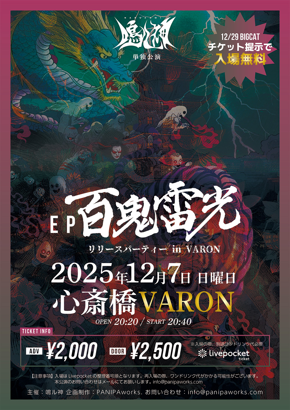 - 前売り ¥2,000 / 当日 ¥2,500 / 12/29BIGCATチケット所有者¥0