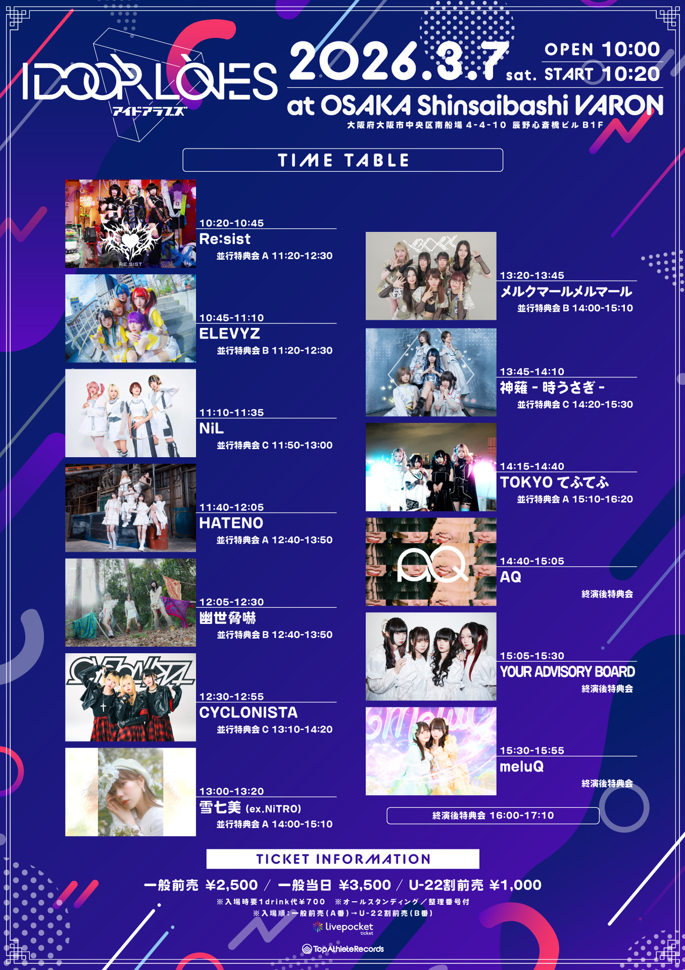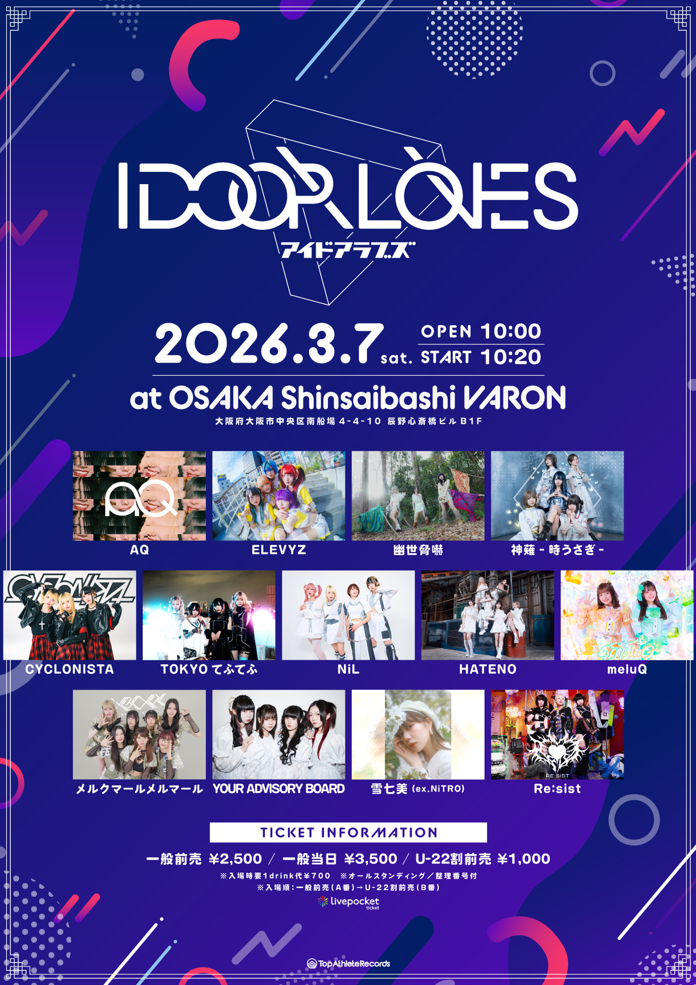 - AQ / ELEVYZ / 幽世脅嚇 / 神薙-時うさぎ- / CYCLONISTA / TOKYOてふてふ / NiL / HATENO / meluQ / メルクマールメルマール / YOUR ADVISORY BOARD / 雪七美 (ex.NiTRO) / Re:sist